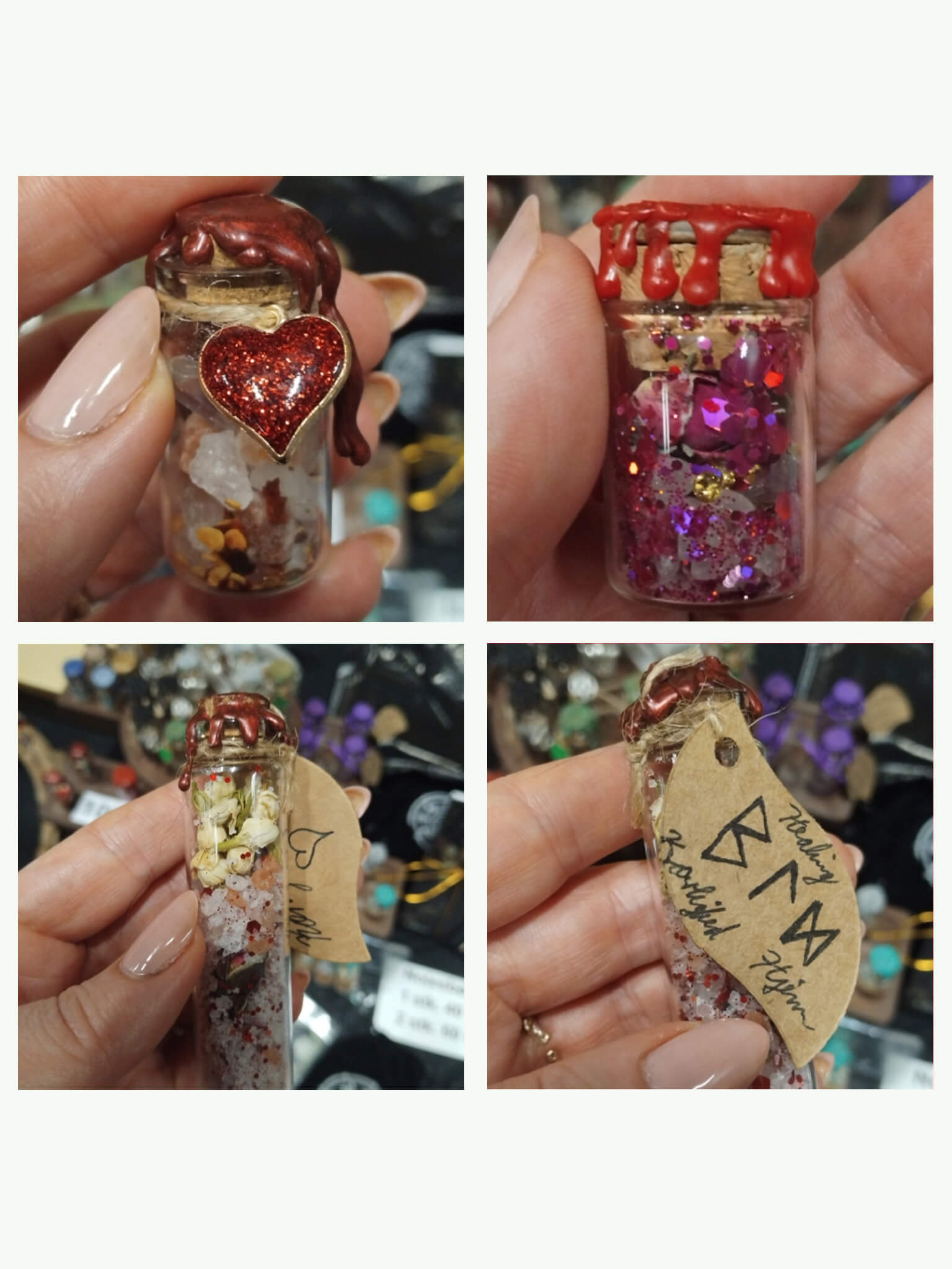 Kærlighedseliksir i besværgelsesglas. Du kan selv bestemme mængden af indholdet, det er ikke så vigtigt, hvor meget der er i.